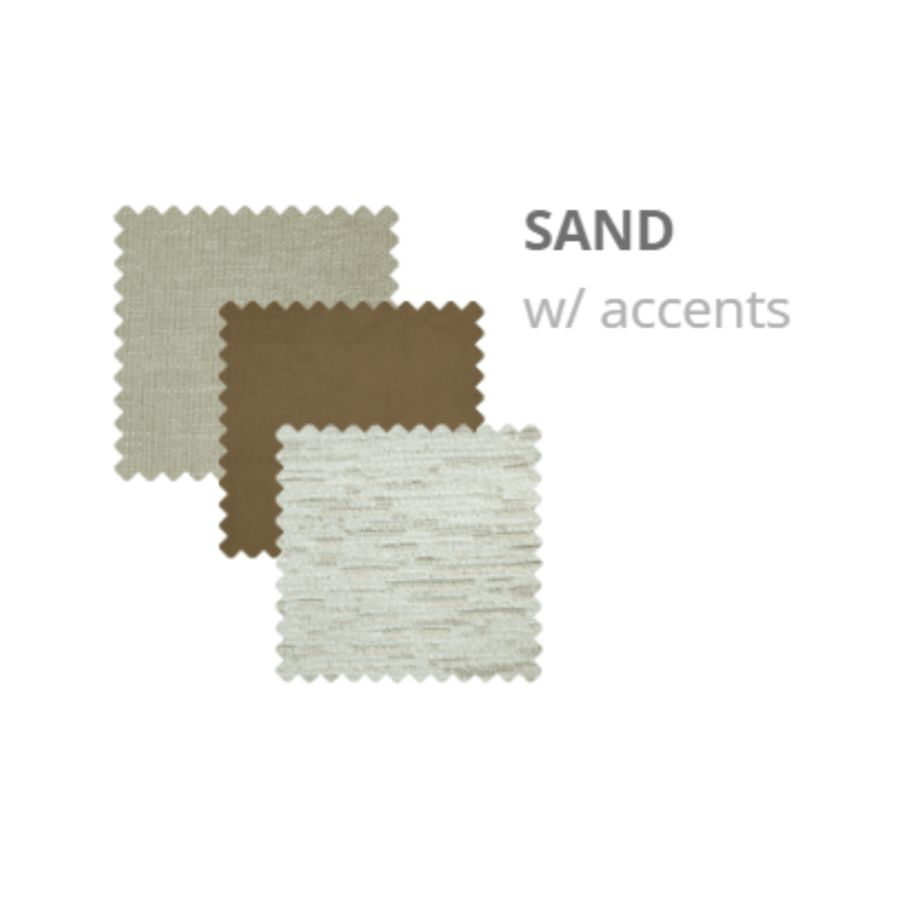 • Sand: Sand sofa fabric with coordinated accent cushions