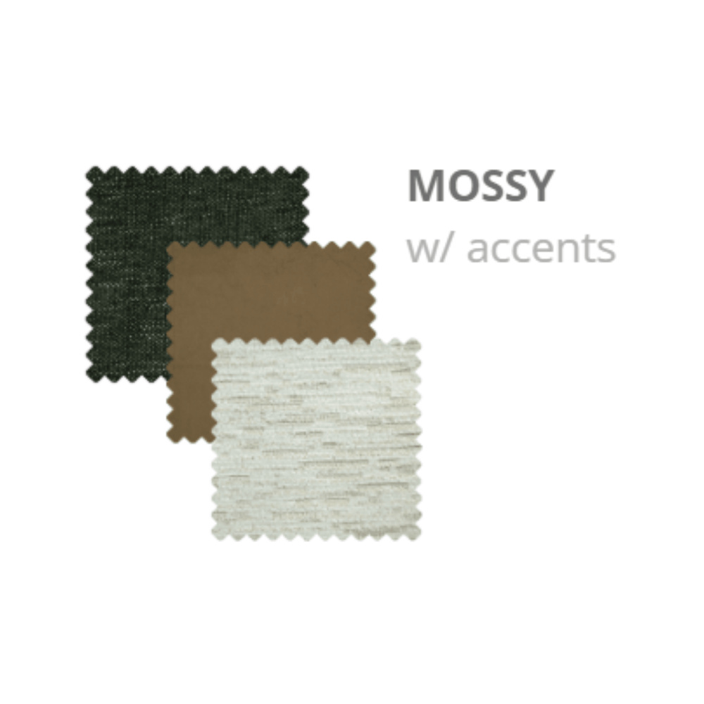 • Mossy: Mossy sofa fabric with coordinated accent cushions