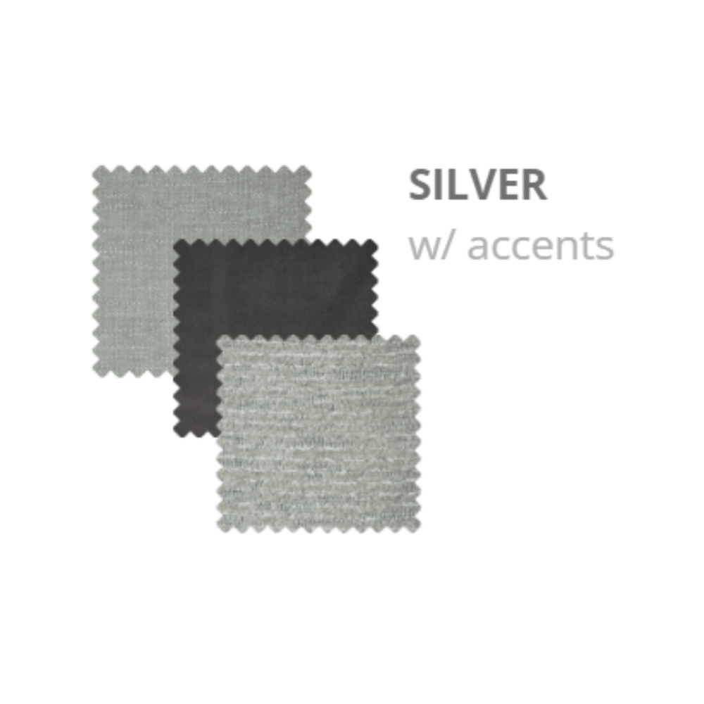 • Silver: Silver sofa fabric with coordinated accent cushions
